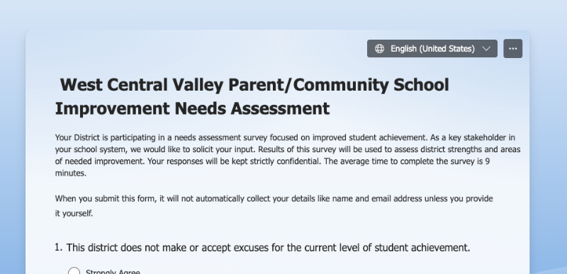 **Reminder** WCV Improvement Needs Assessment